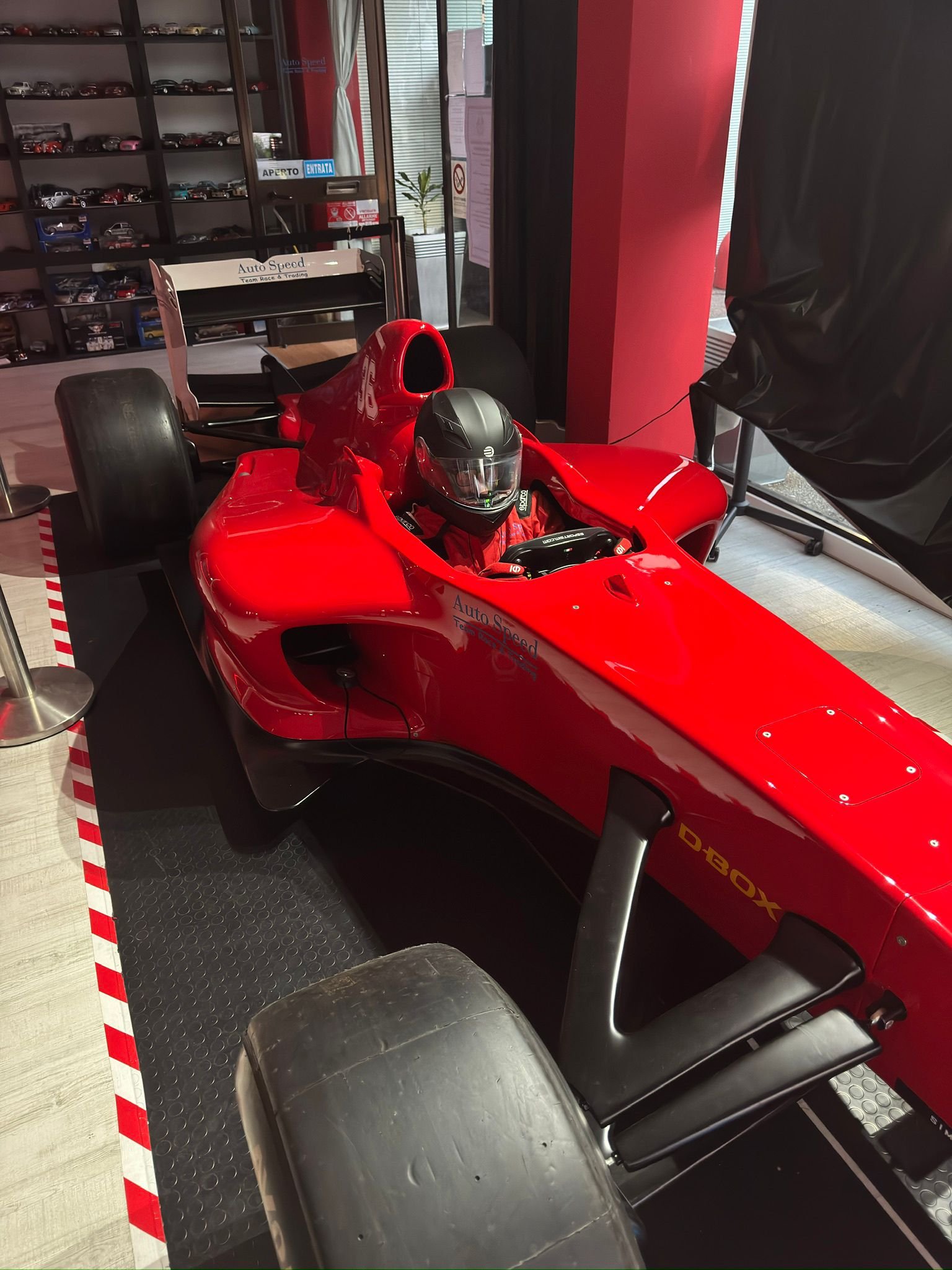 Il software, anche per il simulatore rosso, è sempre Assetto Corsa con volante F1 e cambio al volante.